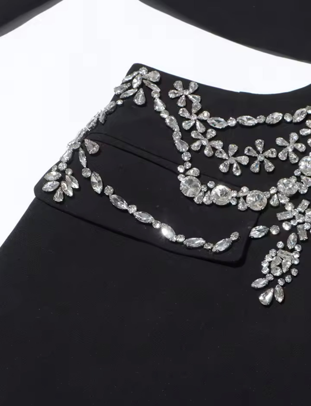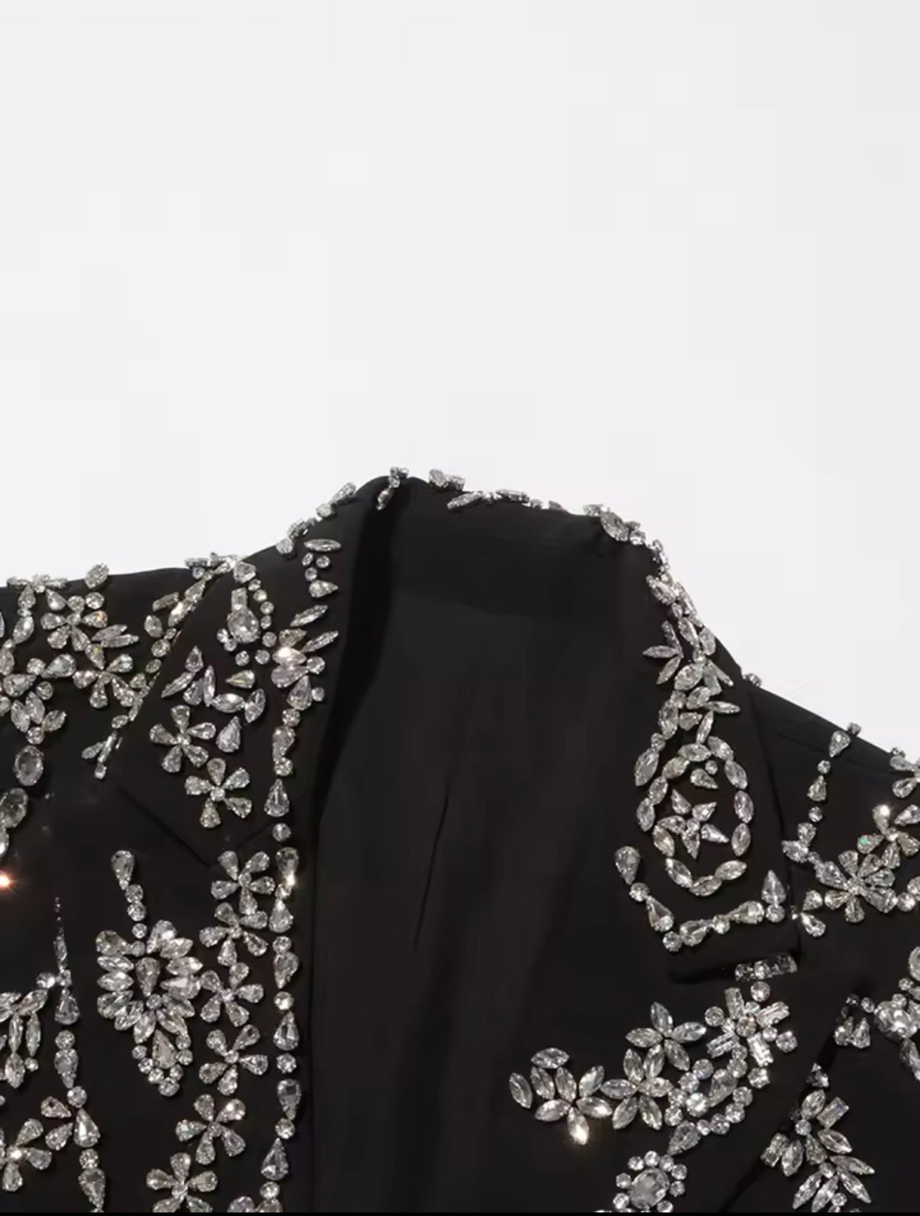 Nosso blazer alfaitaria bordado com cristais, e recortes laterais.