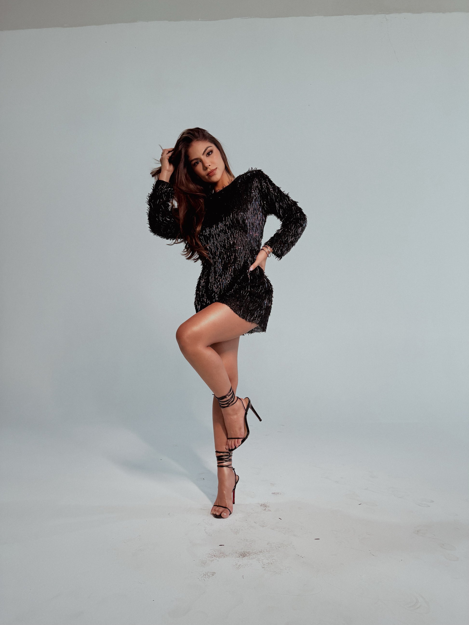 Vestido todo bordado em paetes e canutilhos, possui ombreiras, e um decote super elegante nas costas.