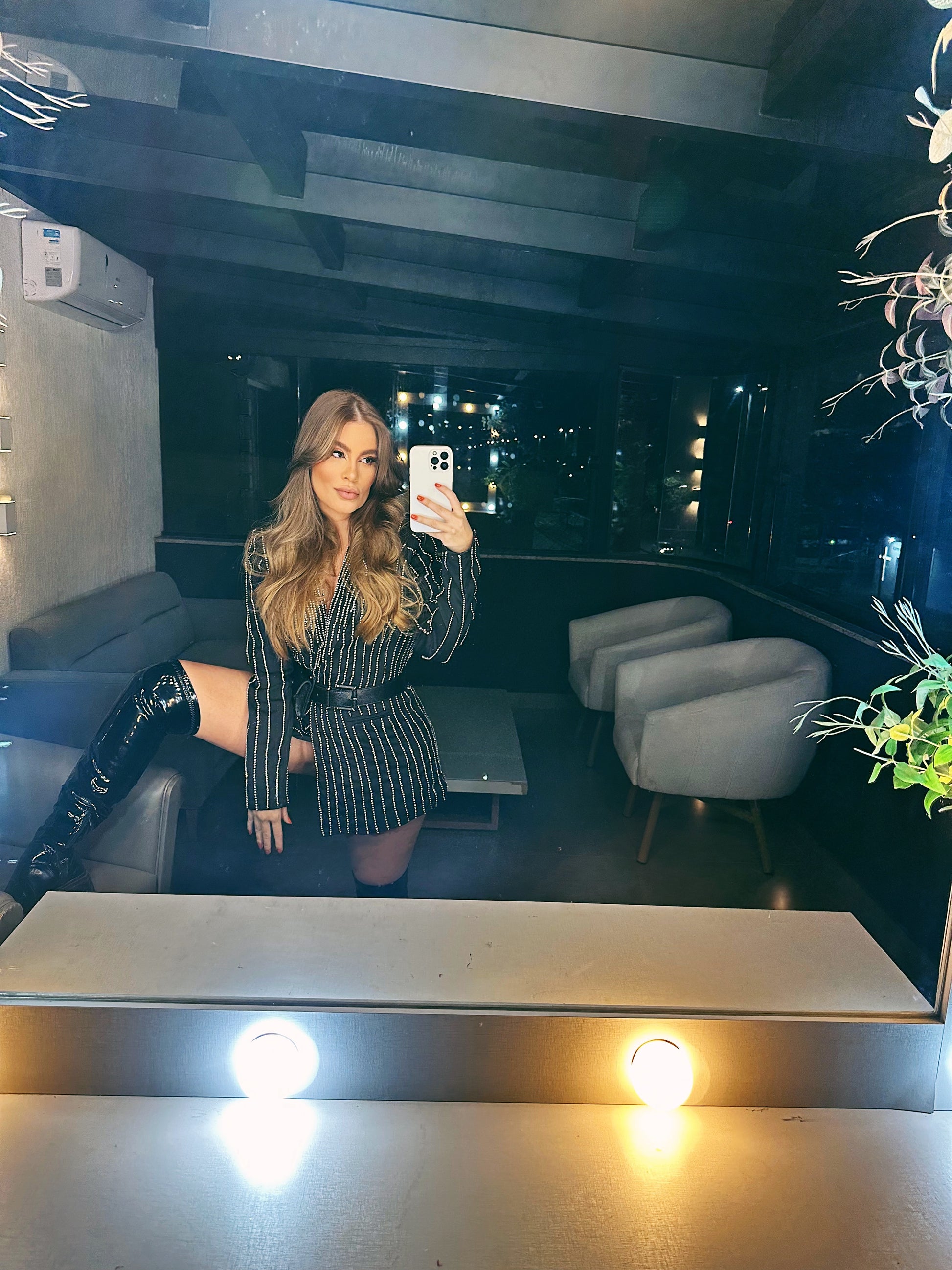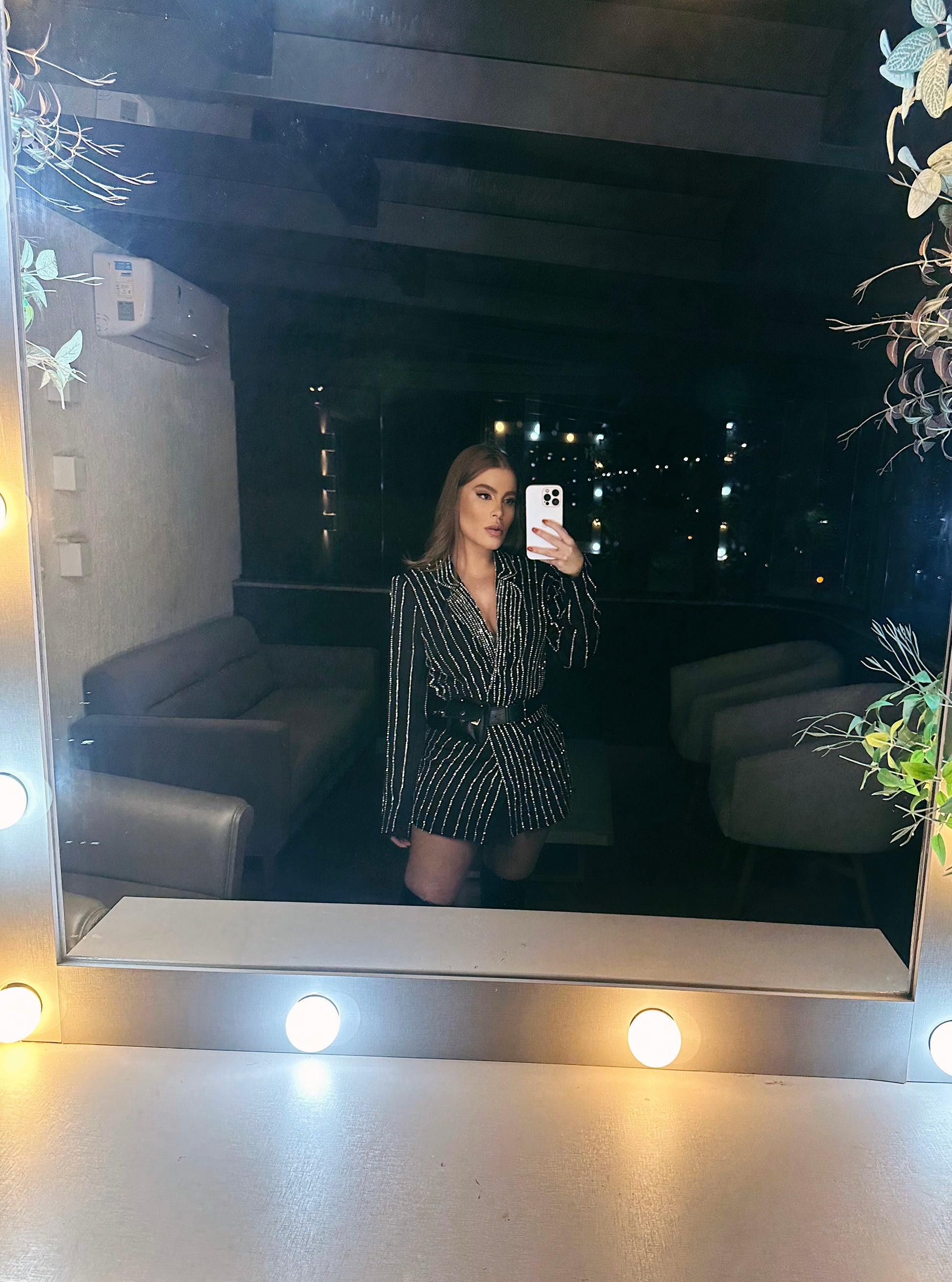 Blazer bordado a mão com aproximadamente 200 metros de strass.