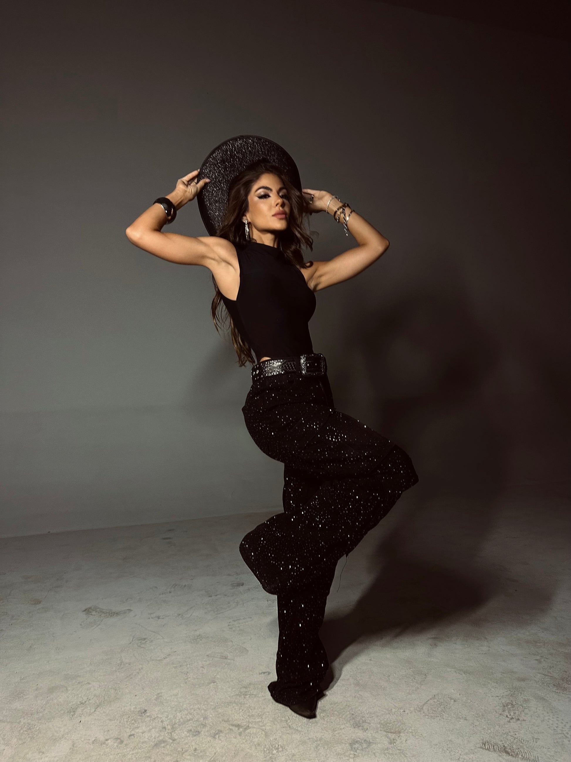 Calça jeans cargo com brilhos .