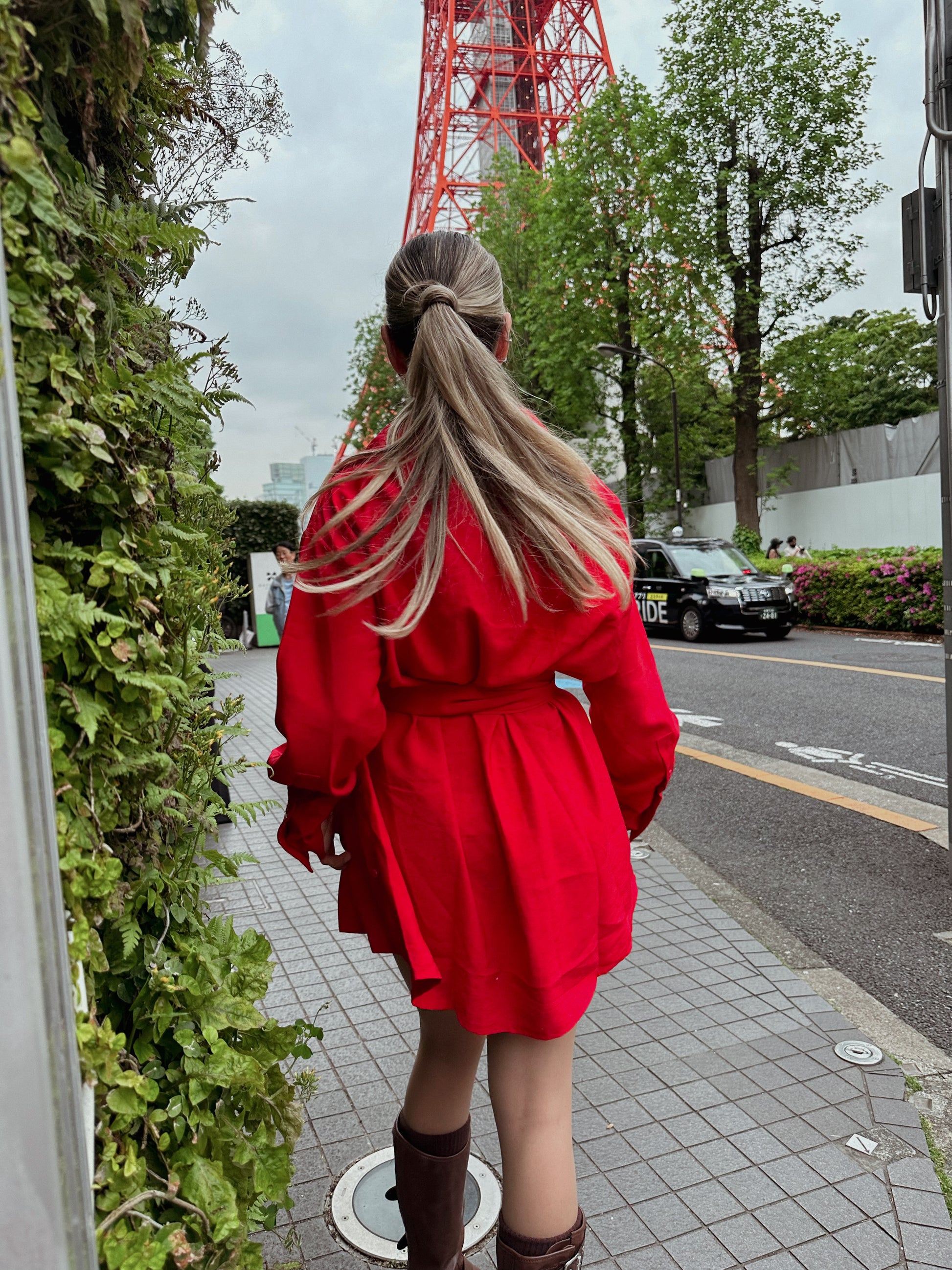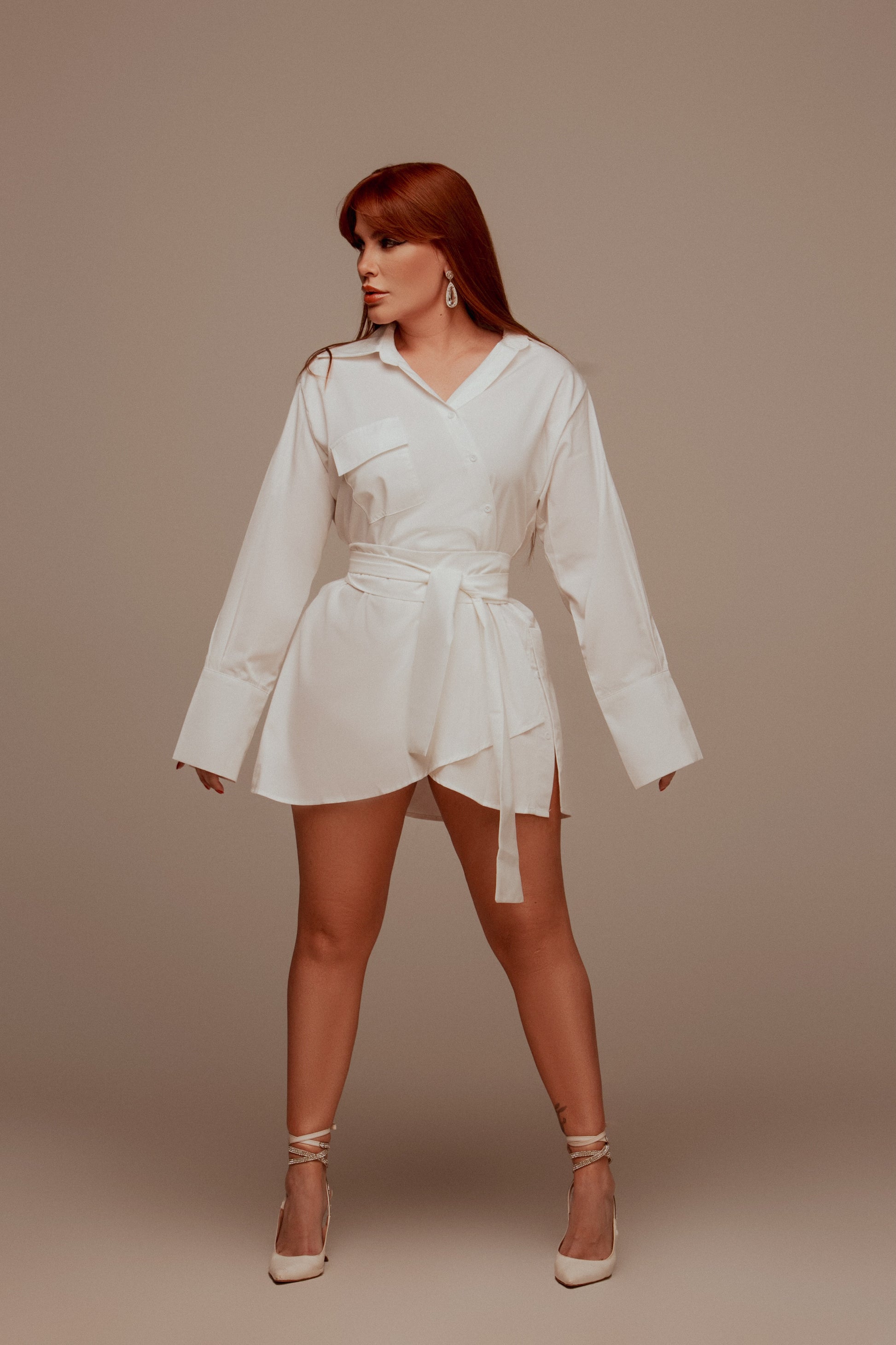 Chemise oversized com recortes que acompanha faixa para usar também na opção acinturada .