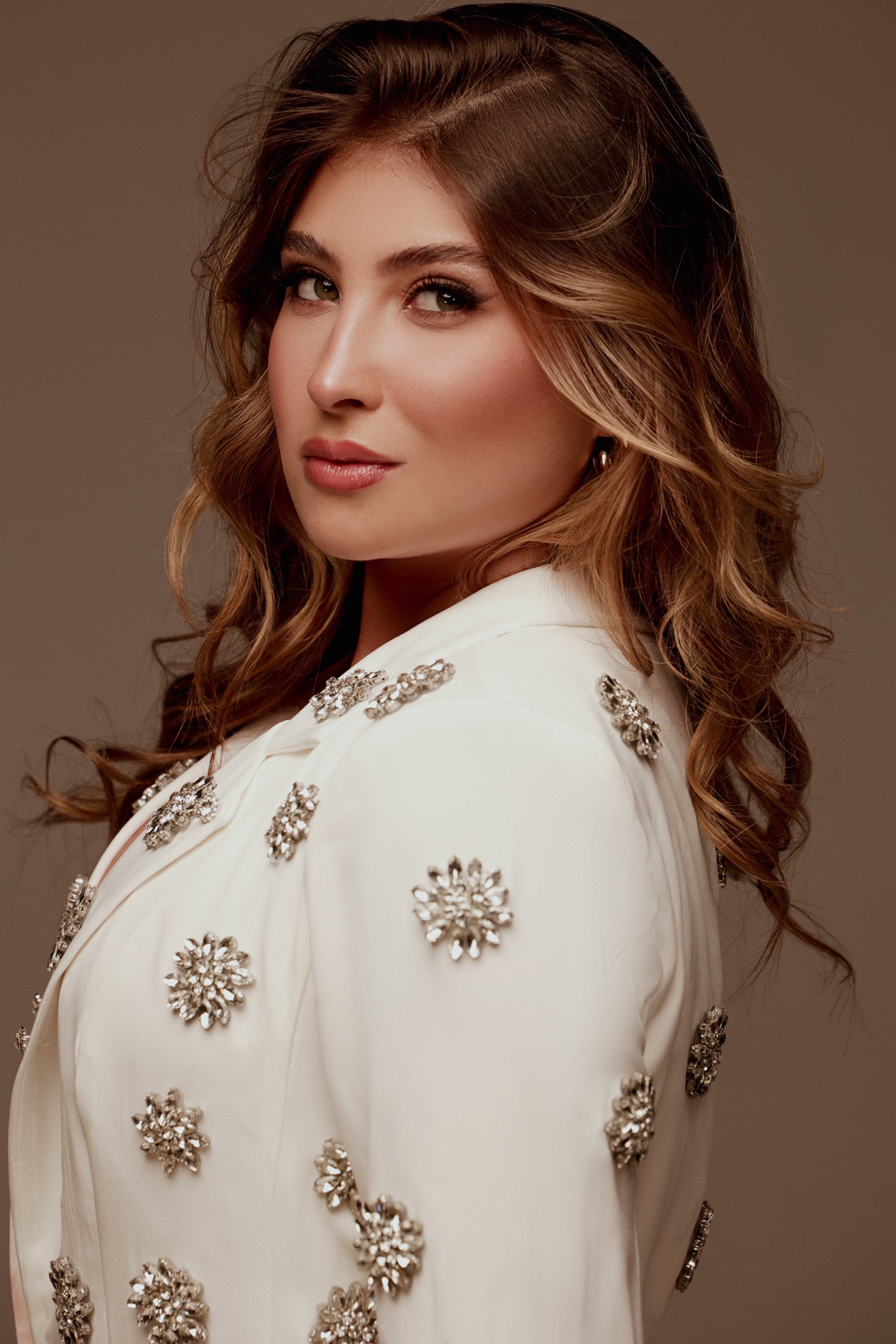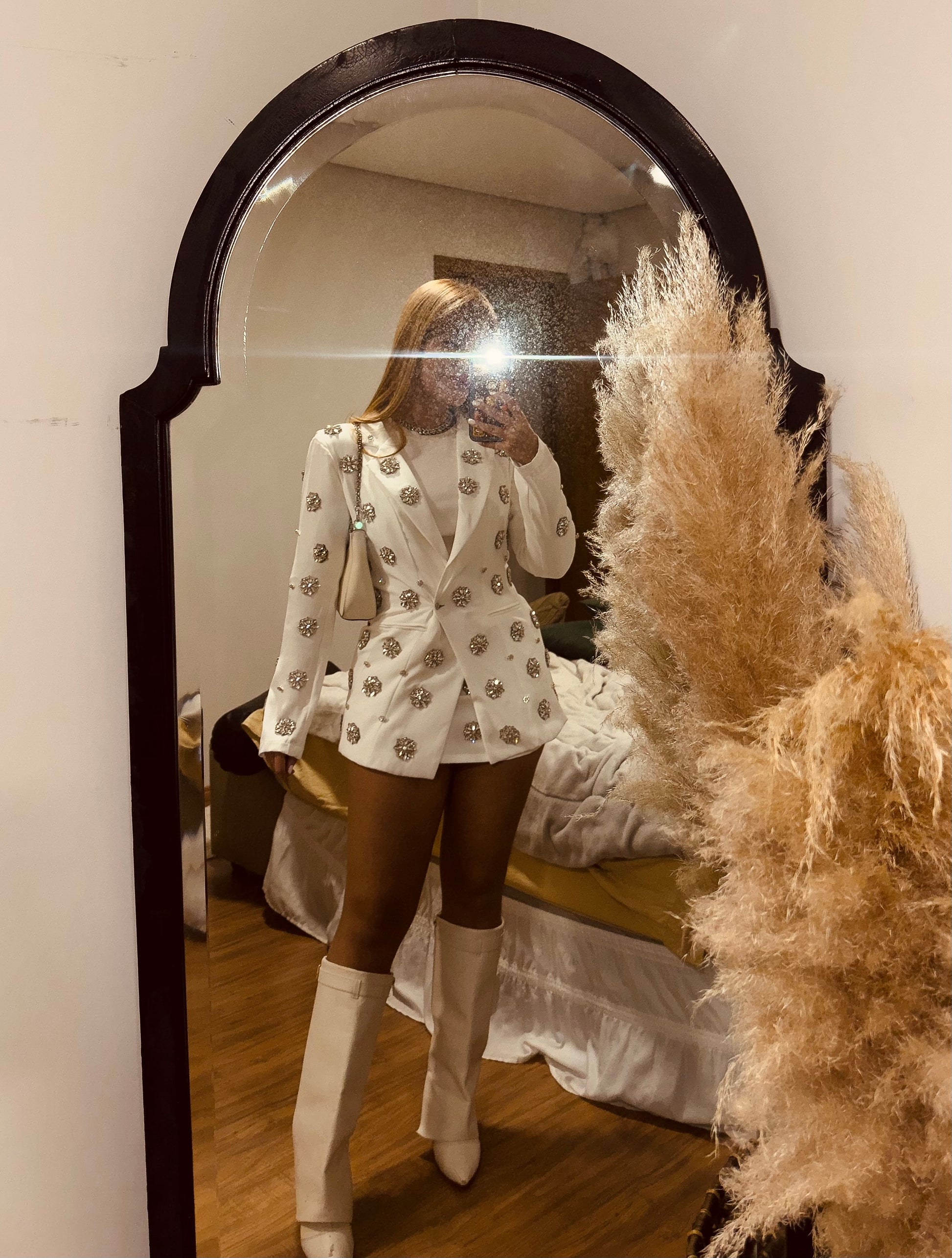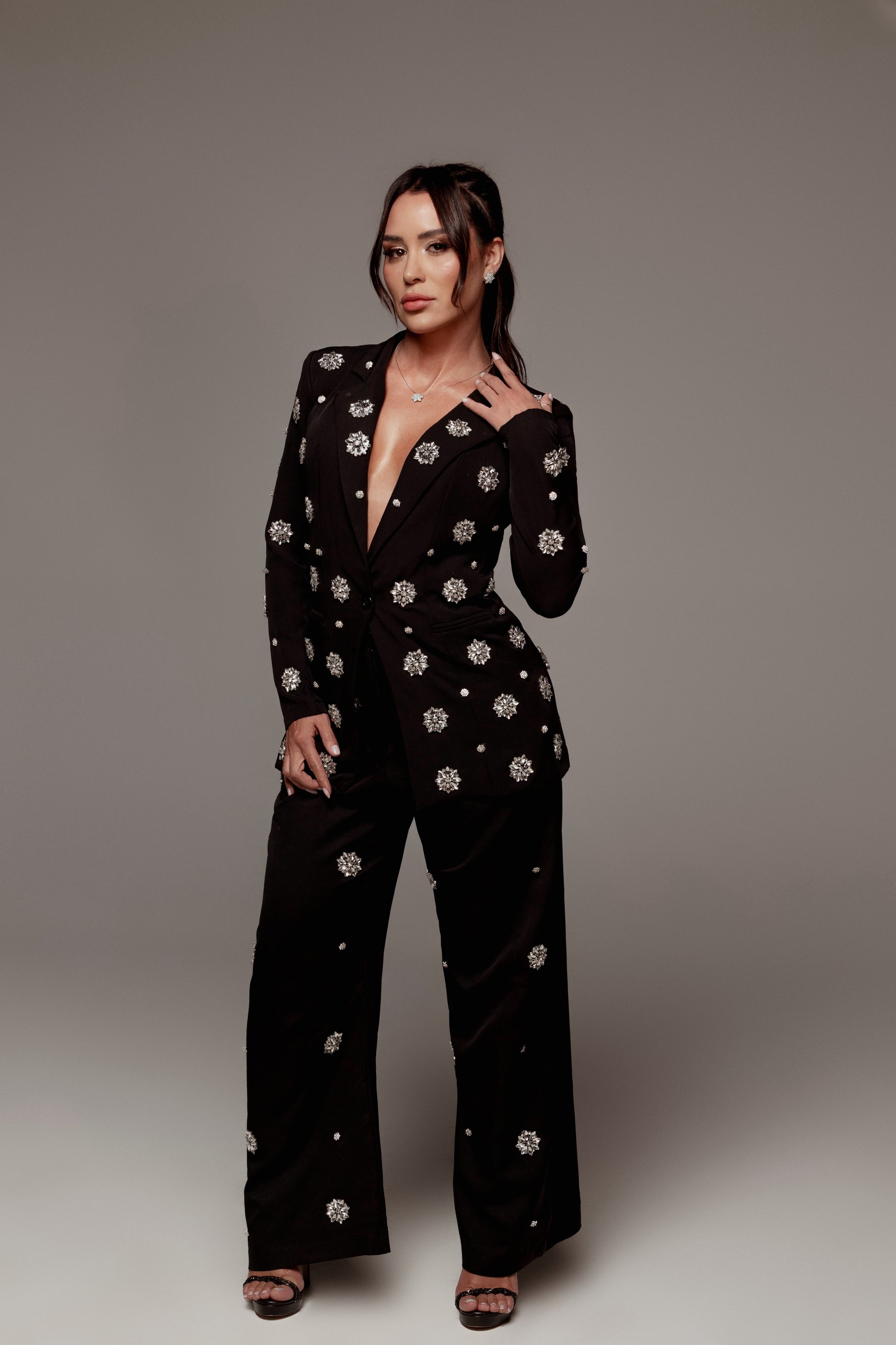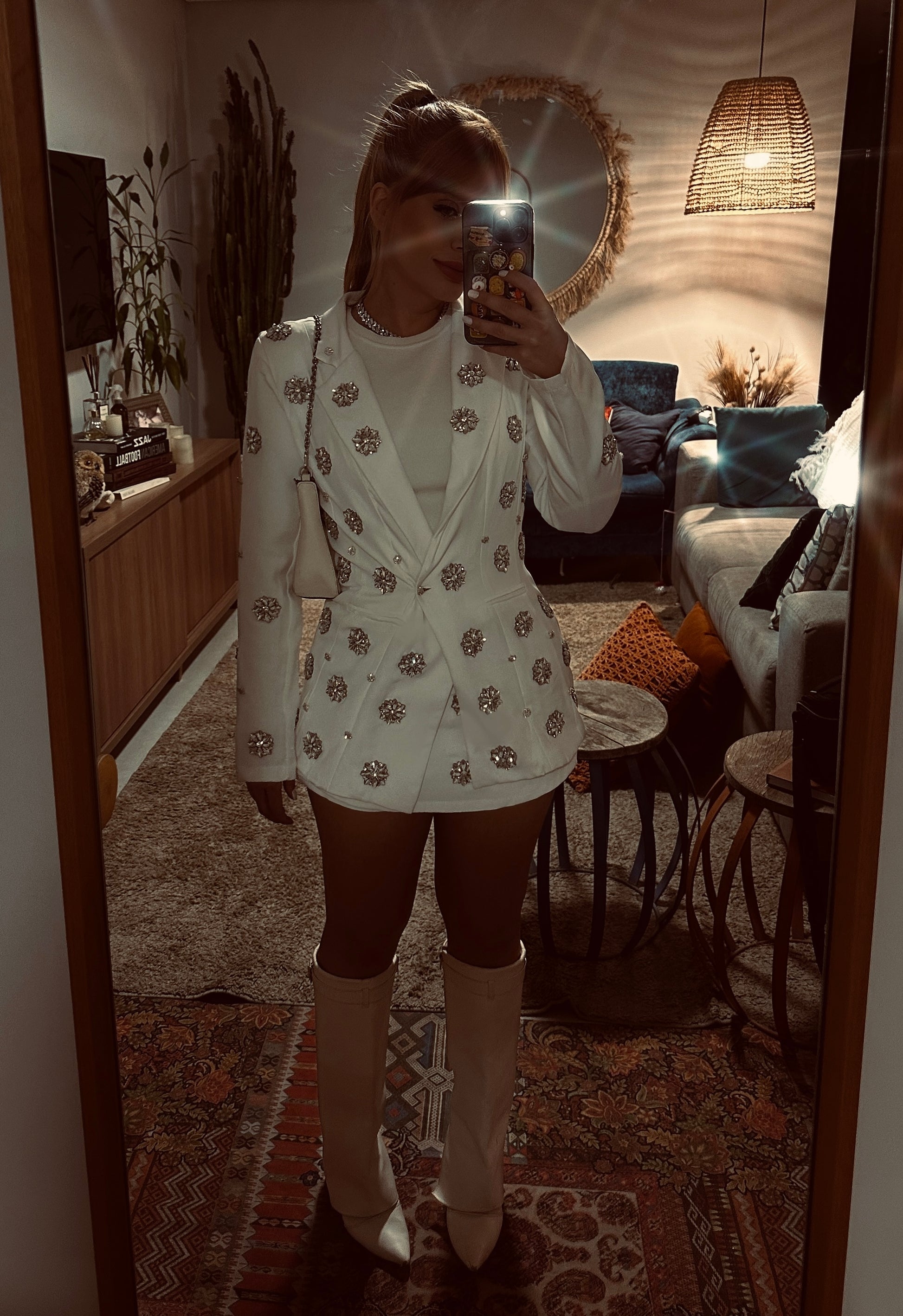 Conjunto alfaitaria com blazer bordado e acompanha saia .