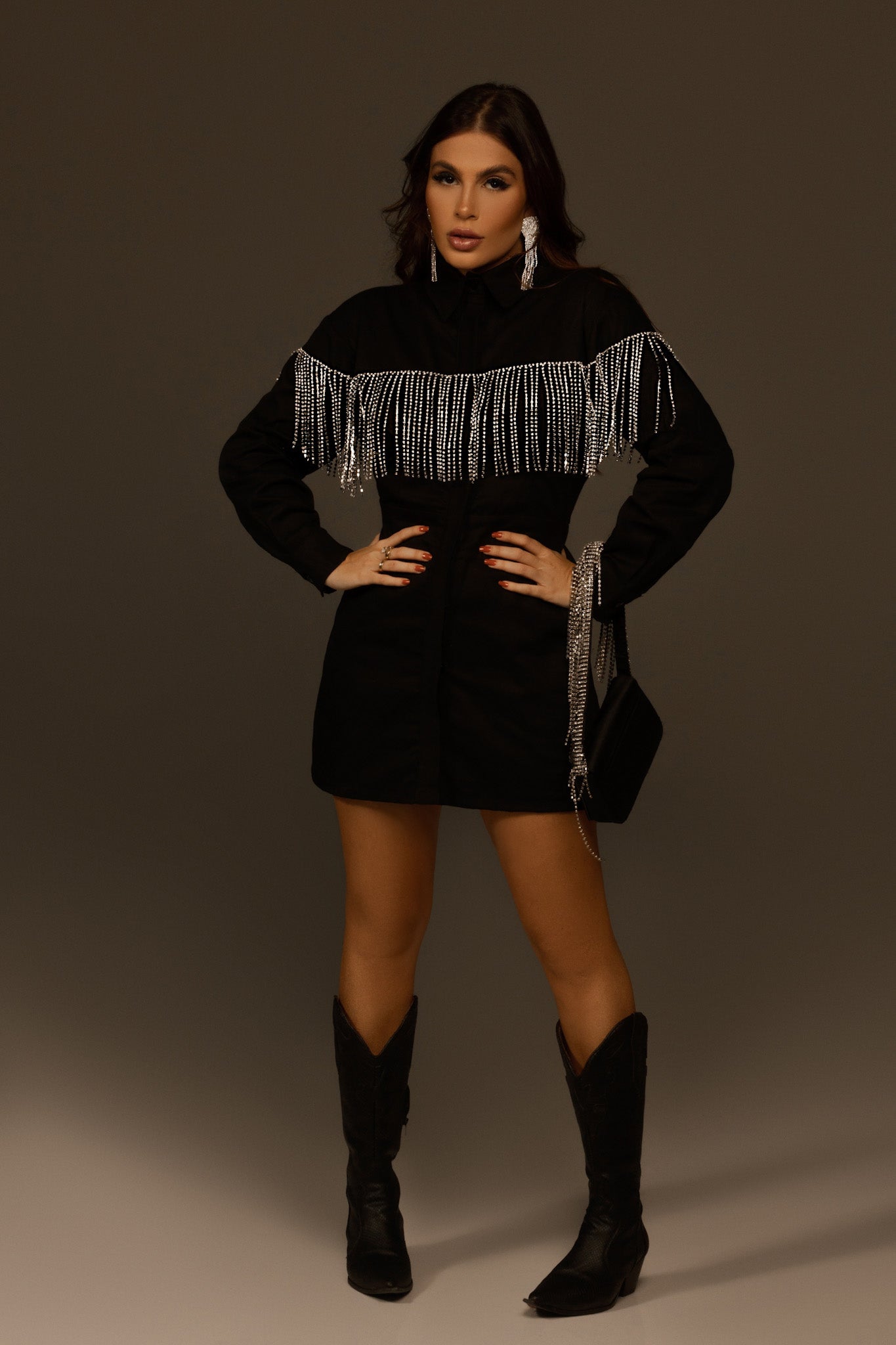 Vestido em Brim bordado com franjas de strass dão charme para nosso Dress Ibiza o mais badalado da nossa coleção 😍.