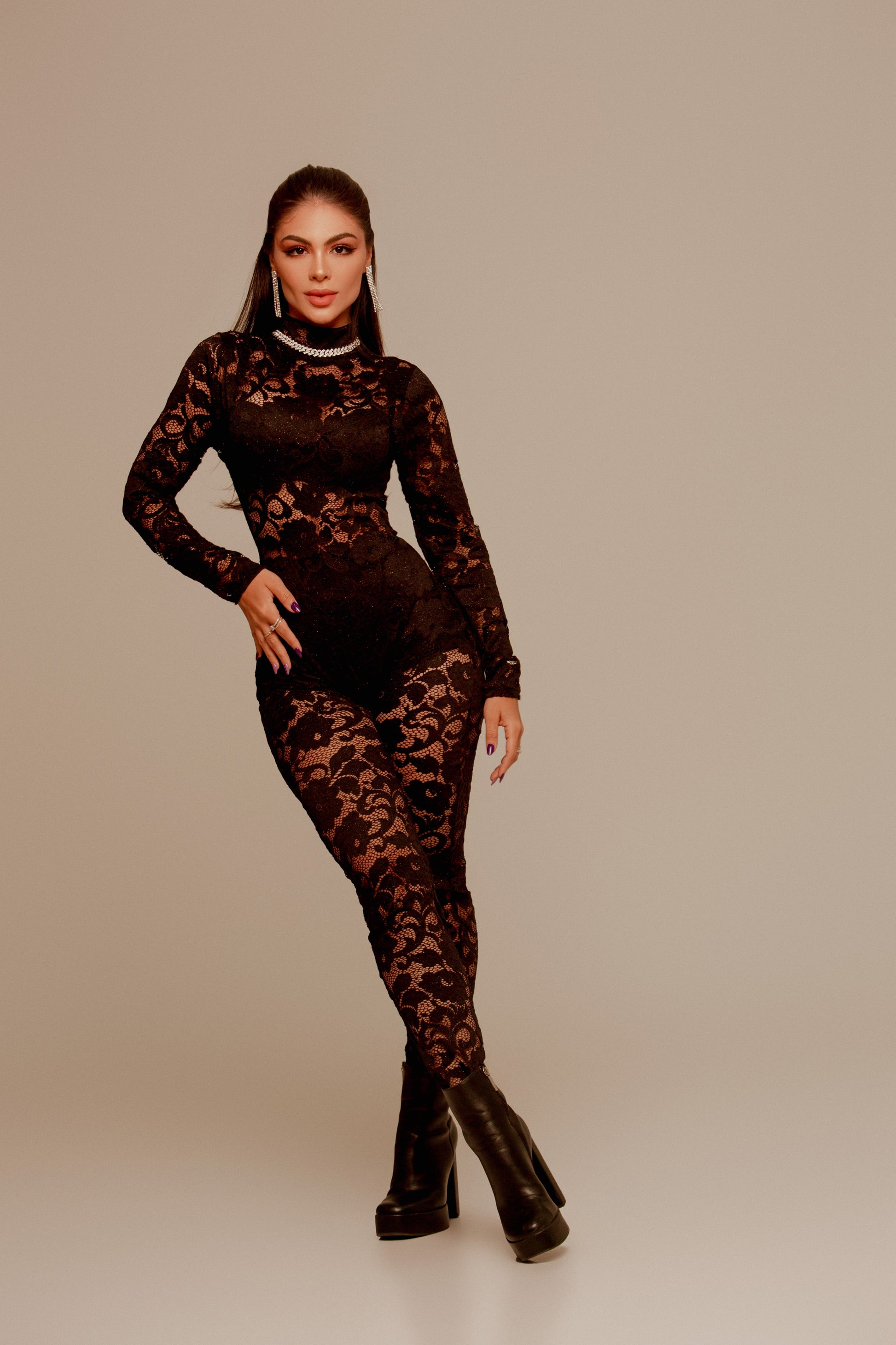 Macacão em renda importada com brilho lindo e discreto. A renda serve com uma espécie de meia calça comprimindo e deixando o corpo modelado e sem marcar, possui elastano .