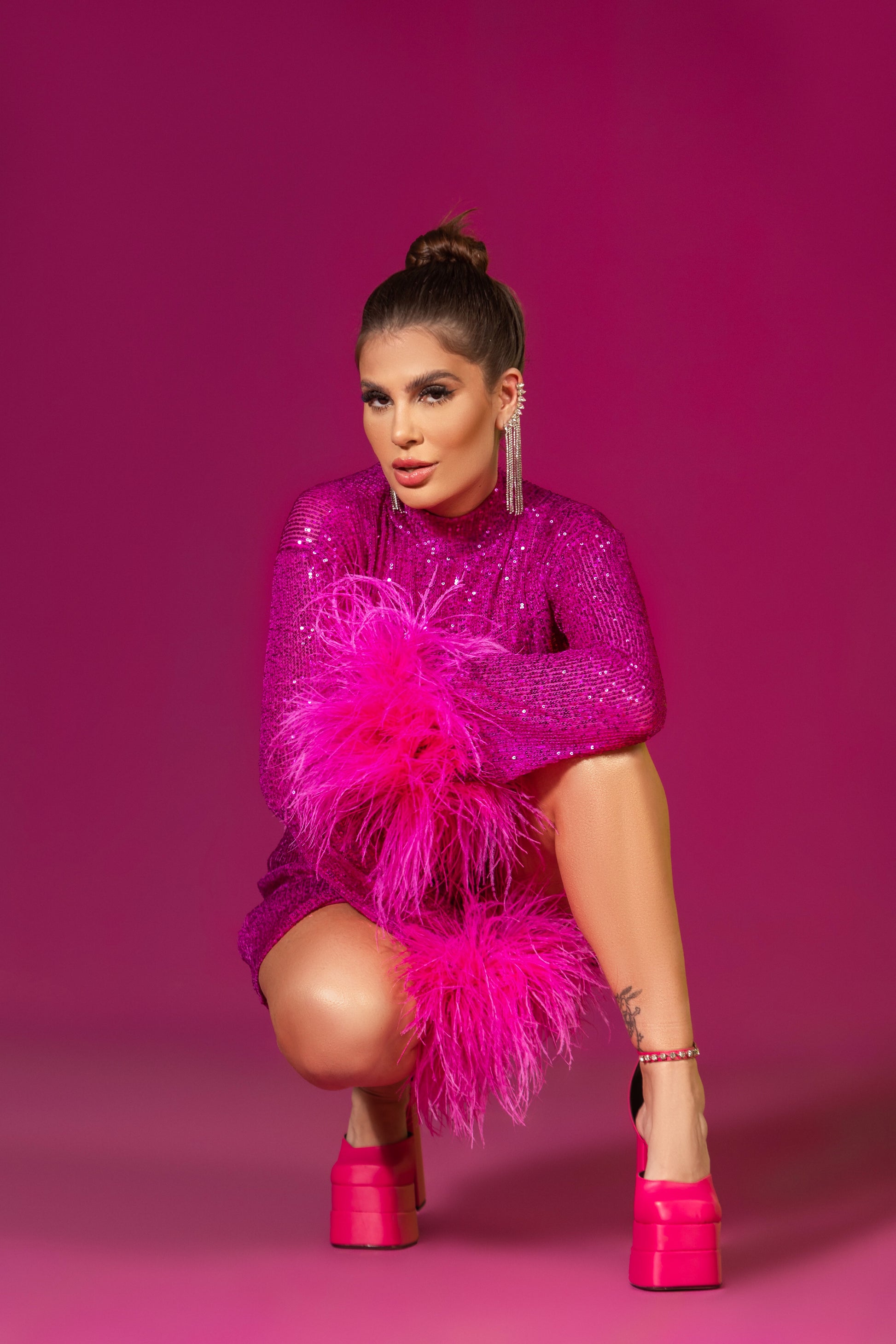 O Dress Penélope é puro charme, feito em paetês e plumas .
