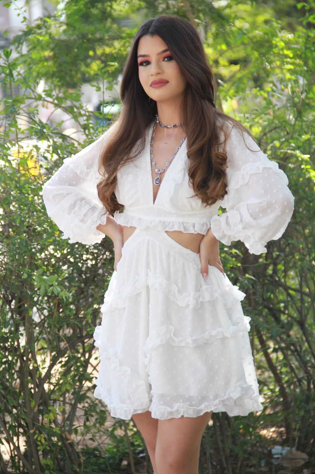 O recorte e a fenda lateral valoriza e modela o contorno da silhueta, deixando ele ainda mais leve e romântico ❣️